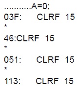 The compiler will create the .LST file in the order of the C source code. The linker has re-arranged the code to properly fit the functions into the best code pages and the best half of a code page. The resulting code is not in source order. Whenever the compiler has a discontinuity in the .LST file, it will put a * line in the file. This is most often seen between functions and in places where INLINE functions are called. In the case of an INLINE function, the addresses will continue in order up where the source for the INLINE function is located.