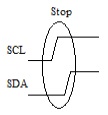 When the master is finished read or writing data it does an I2C stop to indicate that it is done communicating with the device. The master should also do an I2C stop any time the slave device does not pull the SDA line low during the ACK bit when the slave device is controlling the SDA line. The I2C stop is done by transitioning the SDA line from a low to high when the SCL line is already high. The following is a diagram showing what the I2C stop looks like: