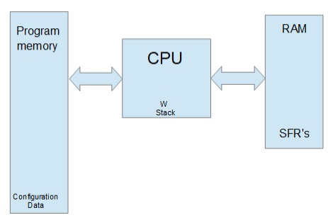 On a PIC ® MCU the memory is different. There are two buses, one for program memory and the other for RAM, peripherals and special registers. That means there are two address 0's. A 0 in program memory and the other in RAM. This is referred to as a Harvard architecture.